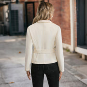 Elegant commuting style with lace up stand up collar solid color woolen coat