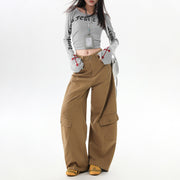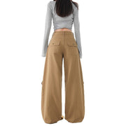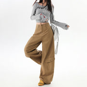 High-Waisted Straight Leg Cargo Pants for Women,Loose Fit Wide Leg Casual Trousers for Plus Size