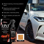 Our 3-in-1 automotive coating spray is carefully formulated with deionized water and polytetrafluoroethylene. Specially designed for cleaning windshields and removing stubborn stains, restoring the windshields to their original state. The usage method is extremely convenient: Spray an appropriate amount of this product evenly on the vehicle. Wipe it back and forth with a towel until it becomes shiny. And it can remove stains on the glass surface to prevent scratches, provide a lasting surface luster and improve clarity.