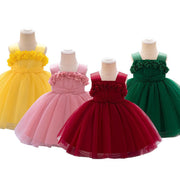 Fairy Tale Style Lace Sleeveless Floral Applique Puffy Dress