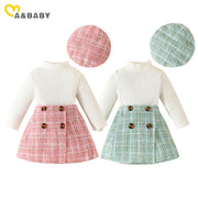 6M-3Y Toddler Infant Newborn Baby Girls Clothes Sets Knit Long Sleeve Tops Plaid Skrits Hat Fall Spring Outfits D05