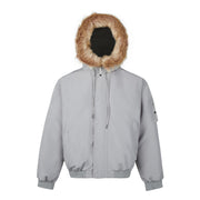 Warm Puffer Jacket with Mountain Carving Fur Collar Coat for Men and Women