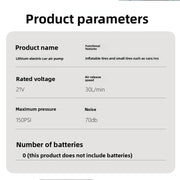 - Wireless speed charging, say goodbye to the drag line troubles, not limited by location/distance, easy to achieve the whole car 4 tire inflation/air free wireless, inflation is not limited