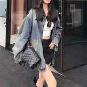 Distressed Ripped Denim Jacket Women Casual Loose Vintage Jacket Top